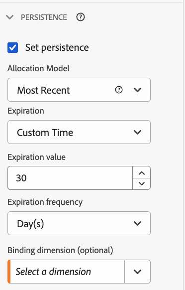 The "Never Expire" option makes it possible for attribution models to use key dimension values throughout the entire visitor conversion window.