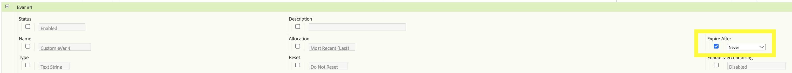 *It is also worth acknowledging that changes in the privacy landscape and evolving browser policies that enforce shorter cookie expiration windows or block third-party cookies altogether, have chipped away at the value of setting the eVar expiration window to "Never Expire".