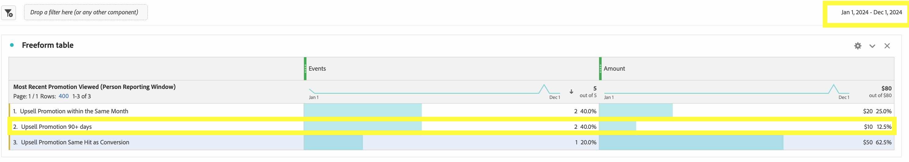 3. The Person Reporting Window panel, as long as the date selection goes back to Jan 1, 2024, is able to to show us the expected attribution even in cases where the conversion window is 90+ days. Eureka!